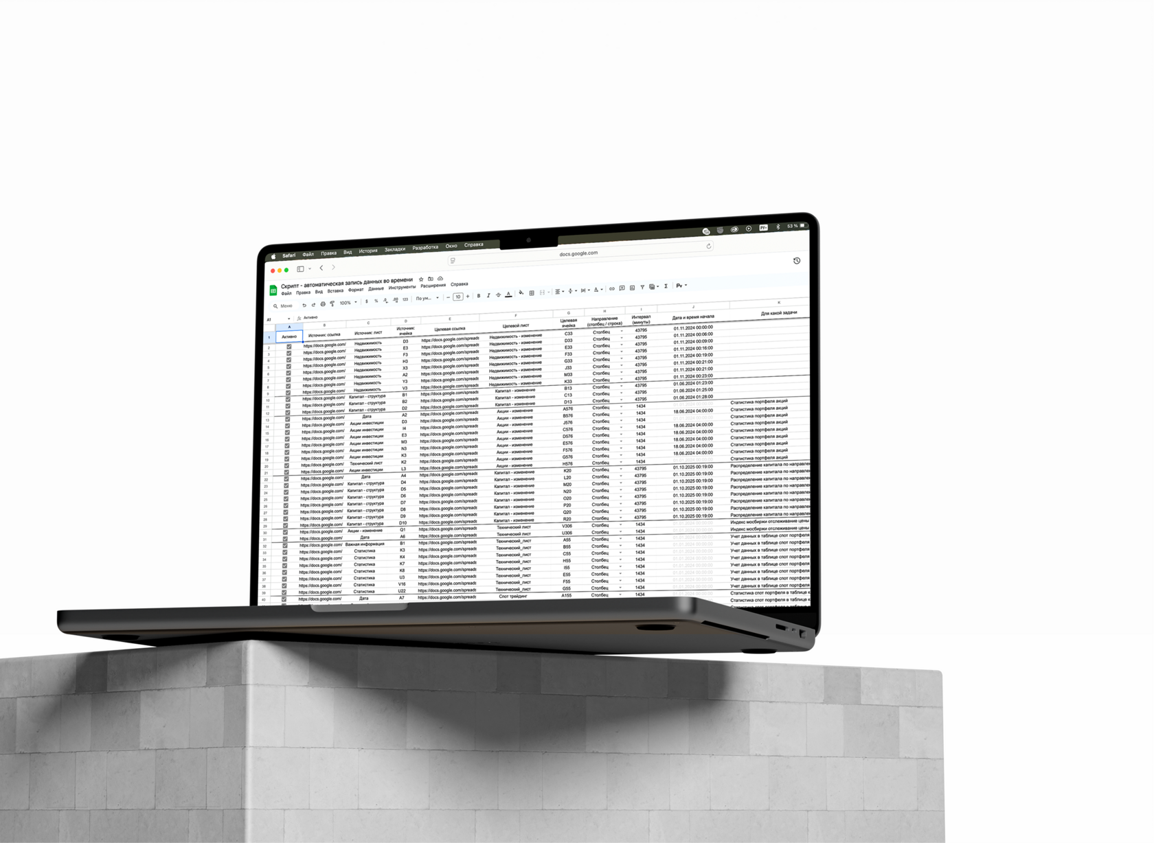Google Sheets шаблон + скрипт для автоматической фиксации данных.